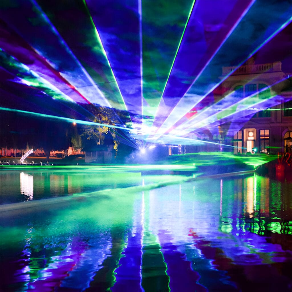 The MIYA MY8 outdoor laser light projector is designed for large-scale productions such as festivals, concerts, theme parks, and architectural lighting. Its high powered laser output makes it ideal for creating impressive outdoor laser light shows and large venue visual effects.